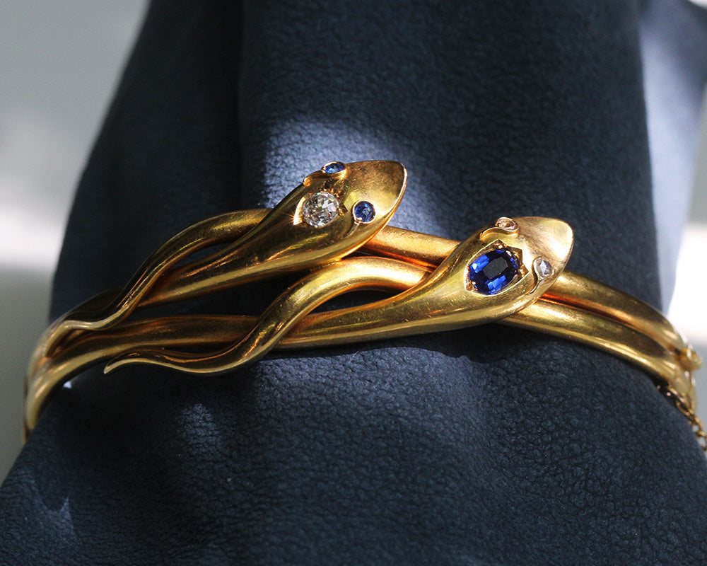 Victorian Sapphire and Diamond Twin Snake Bracelet