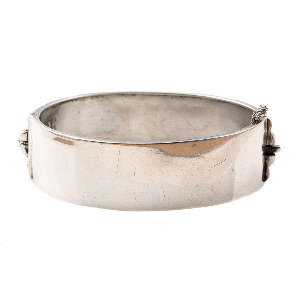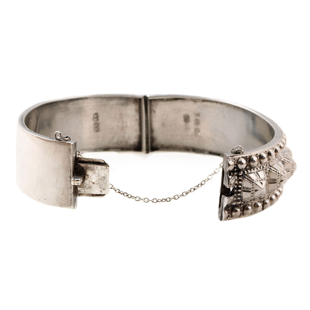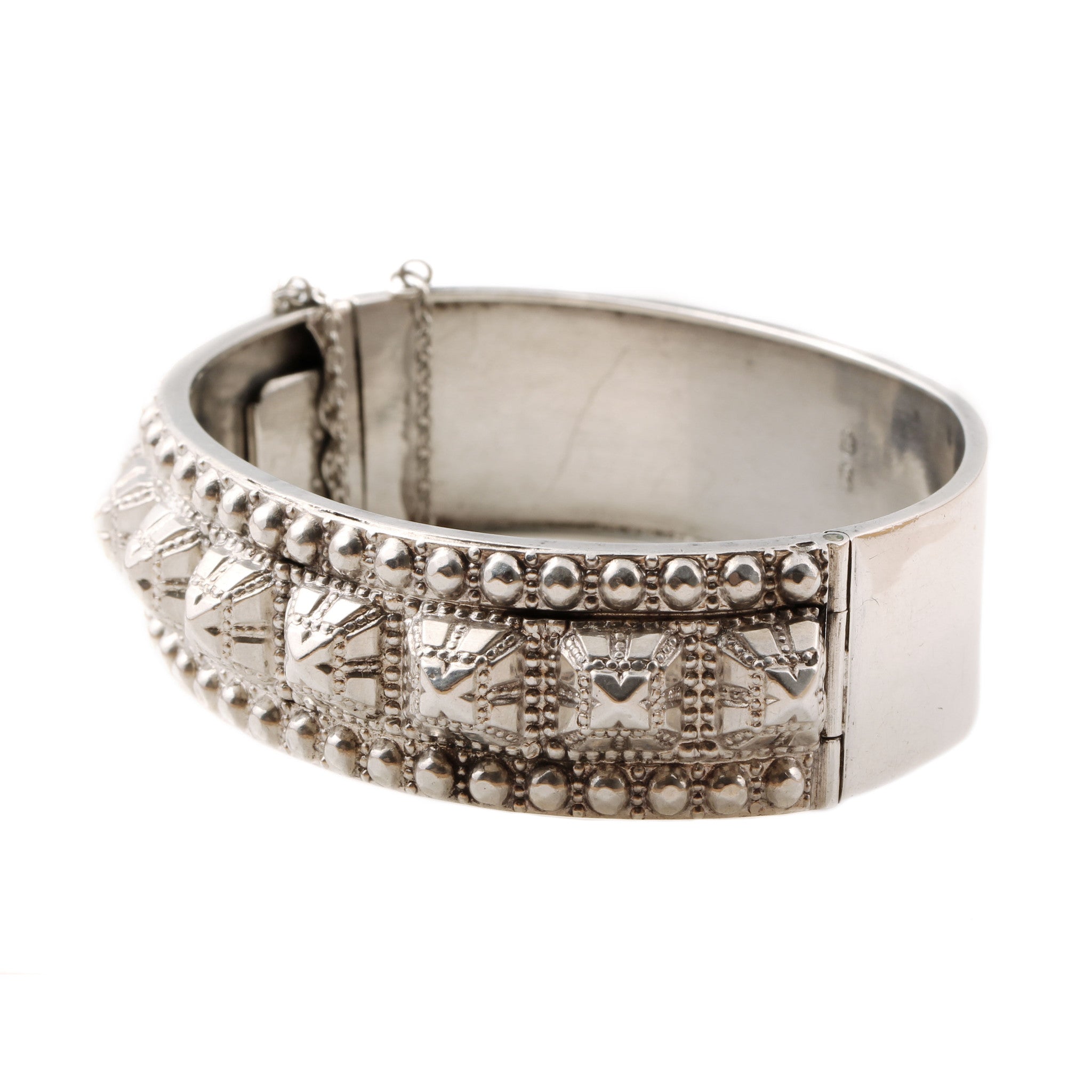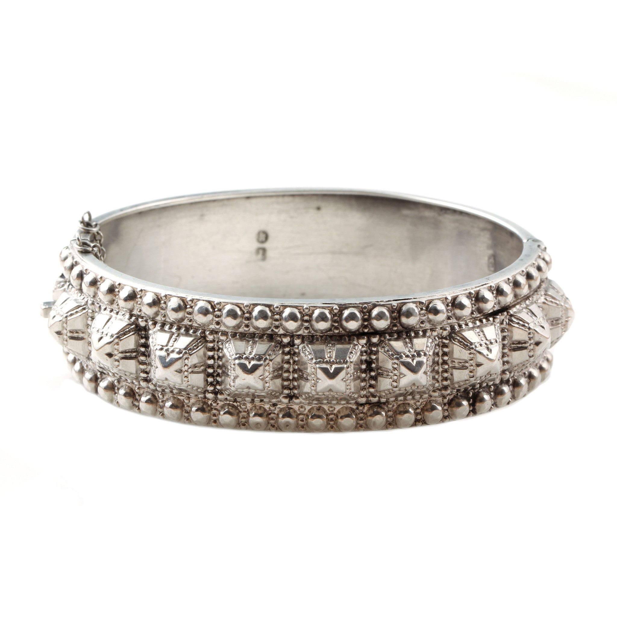 Victorian Sterling Silver Studded Bangle, Circa 1884. English in Origin. Halmarks indicate the piece was made in Birmingham England in 1884.