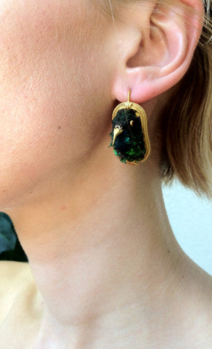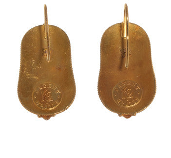 Circa 1870's taxidermy hummingbird earrings in 18k gold with original leather velvet and satin fitted box.