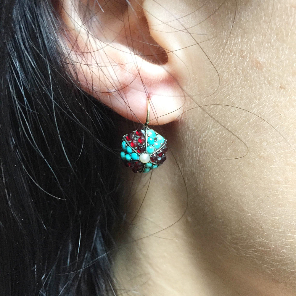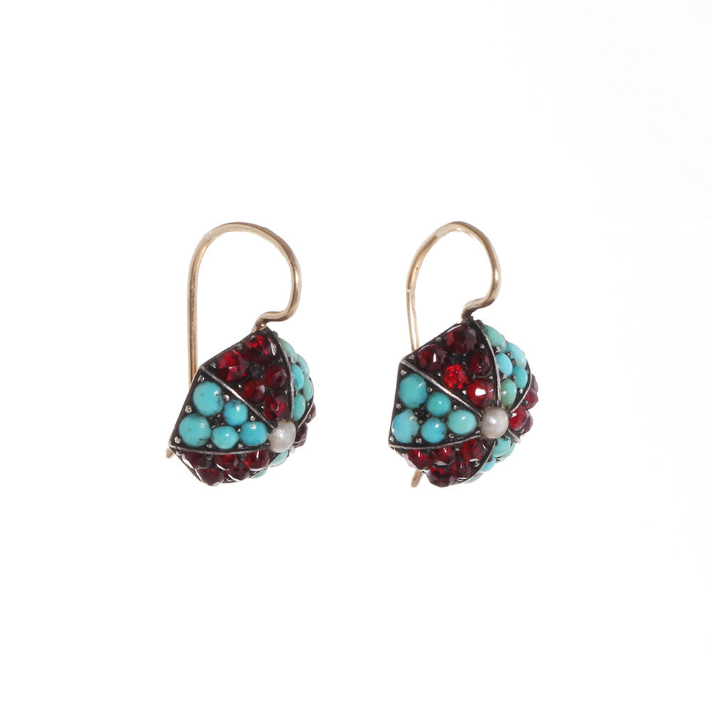 Victorian Era Turquoise & Garnet Earrings