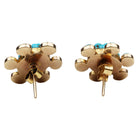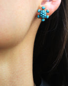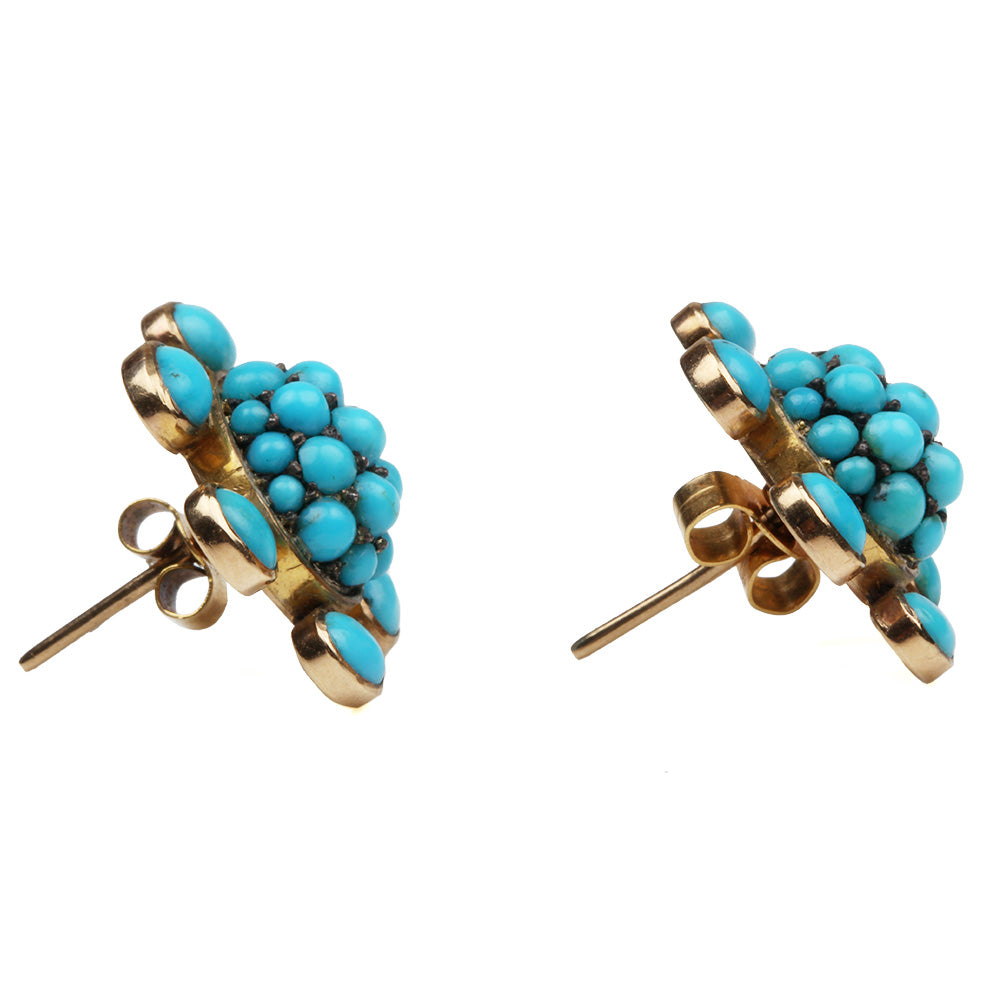 Victorian Persian turquoise cabochon earrings, in 18k gold. Circa 1880, English in Origin. Gold earring post and backs.