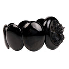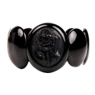 Victorian era carved Whitby jet bracelet. Oval panel bracelet with central floral panel. Strung on stretch cord as it was in its original form . The best carvers in Whitby were sent to Naples, to train in the tradition of cameo carving. English in origin. Circa 1870.