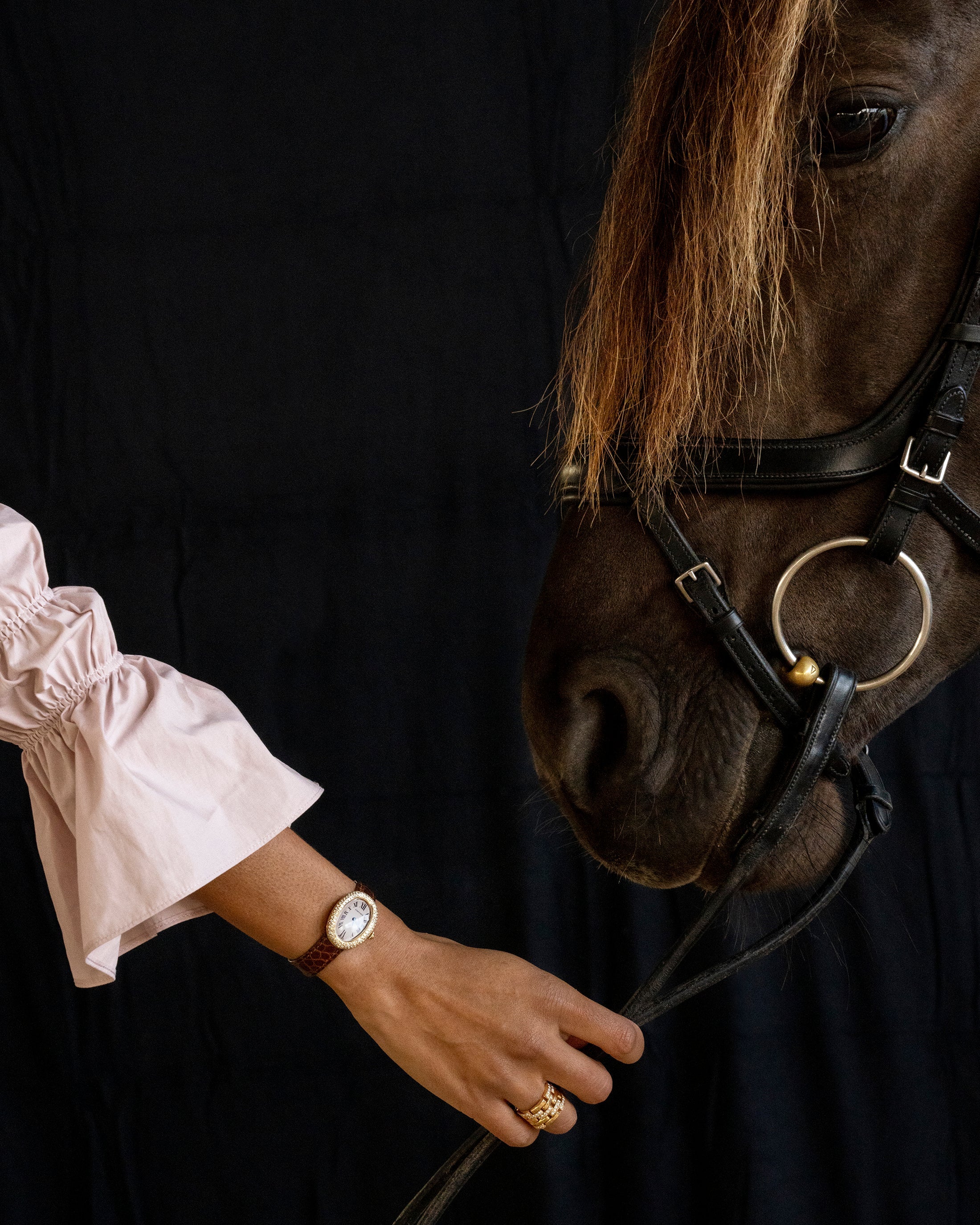 Vintage ladies watch with elegant ellipse shape set with diamonds. Deployant buckle comes with multiple straps. Signed Cartier Paris, 18k gold, serial #866048 0418.