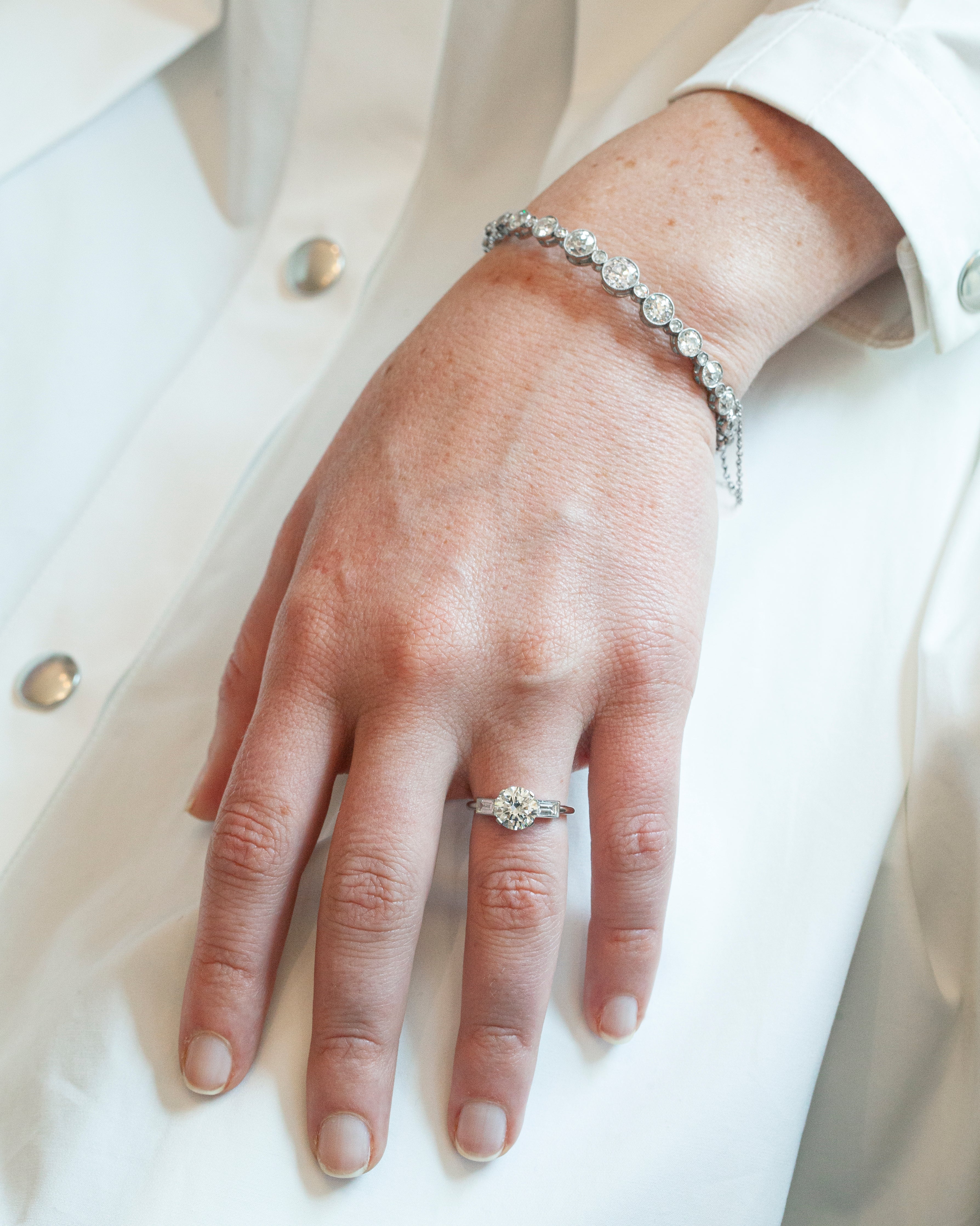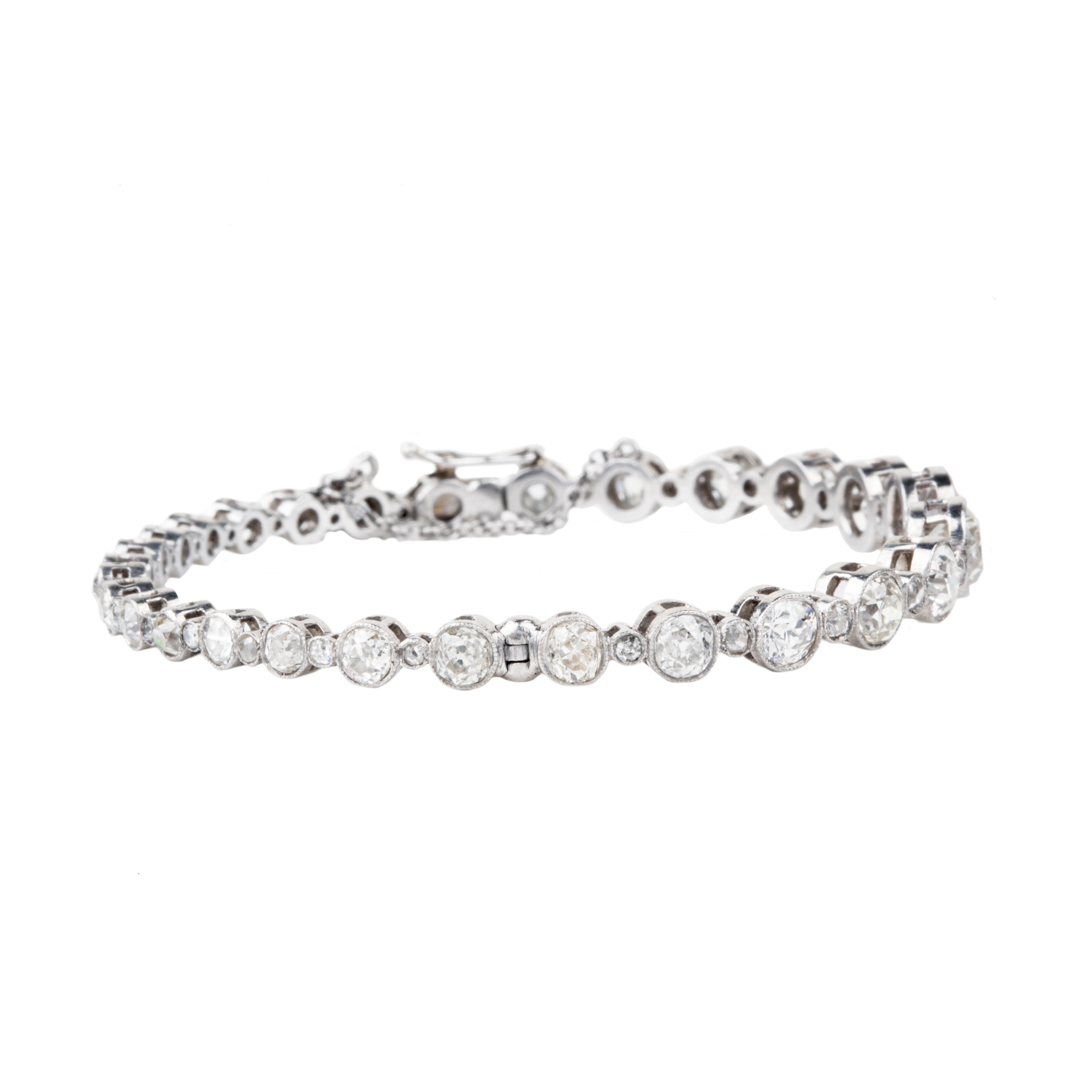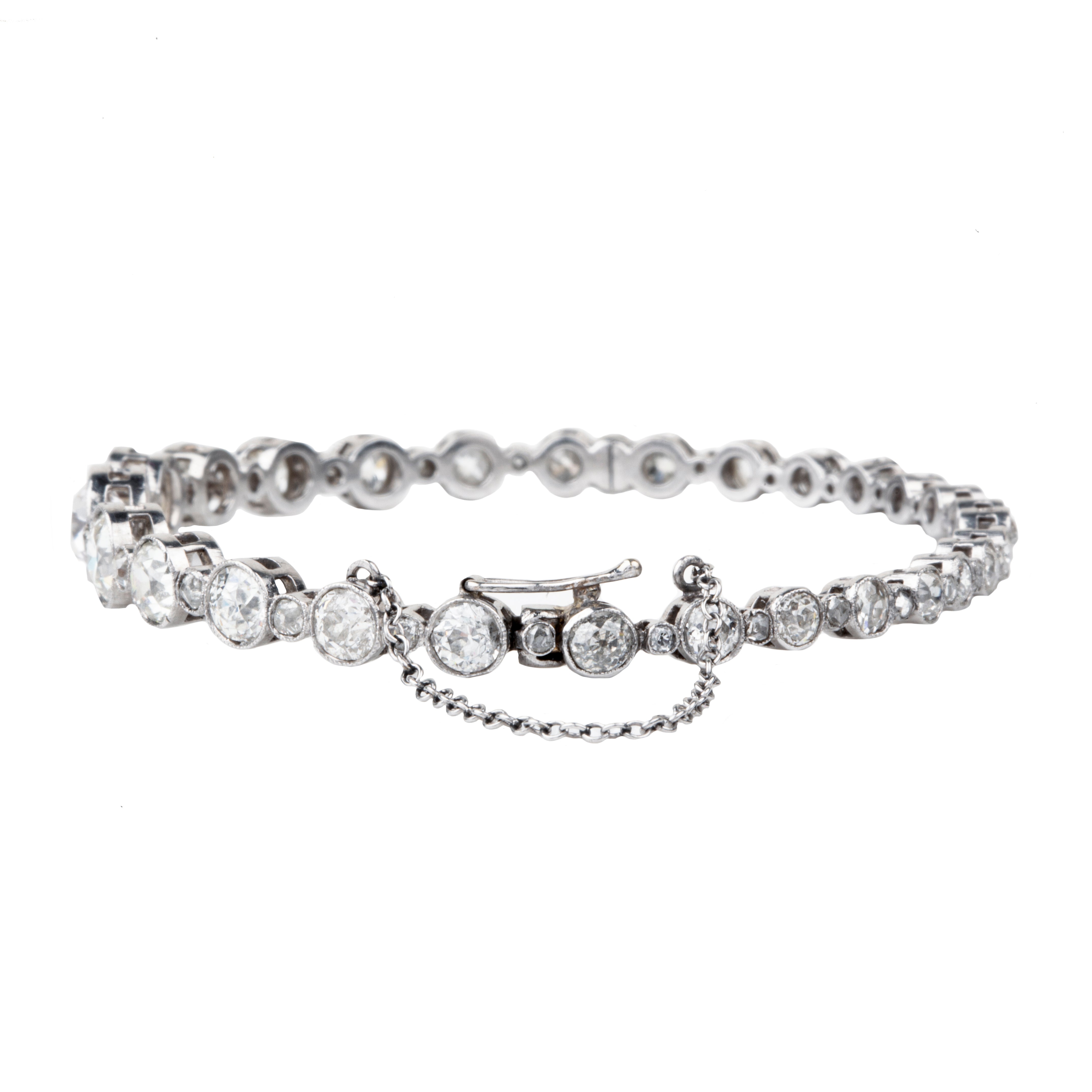 Hidden push clasp and platinum safety chain. The inner diameter is 6.75".
