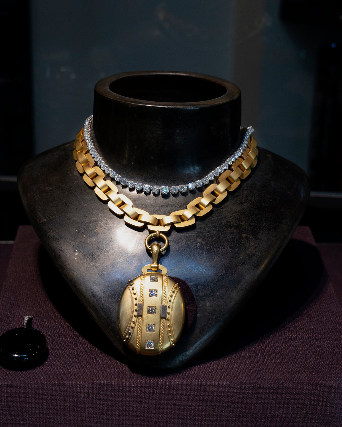Necklace measures 18" in length. Hidden push tab closure at back. It lays beautifully on the neck and would be great layered.