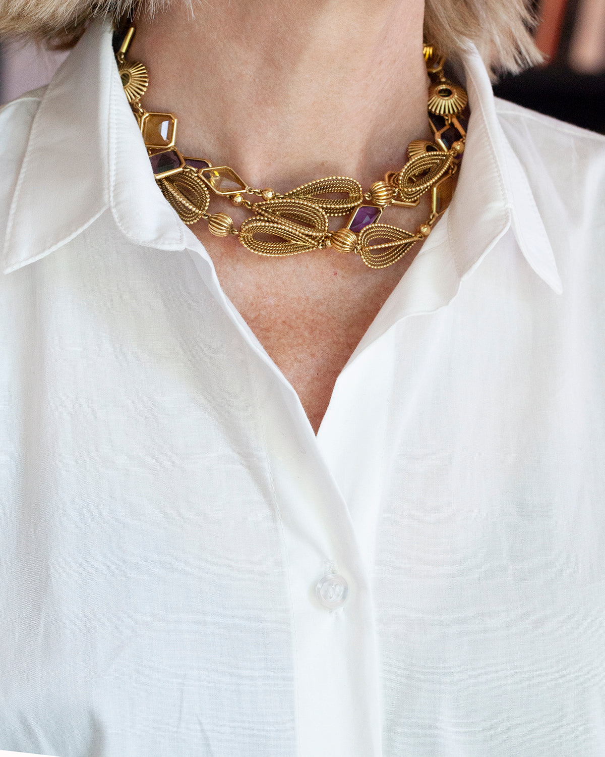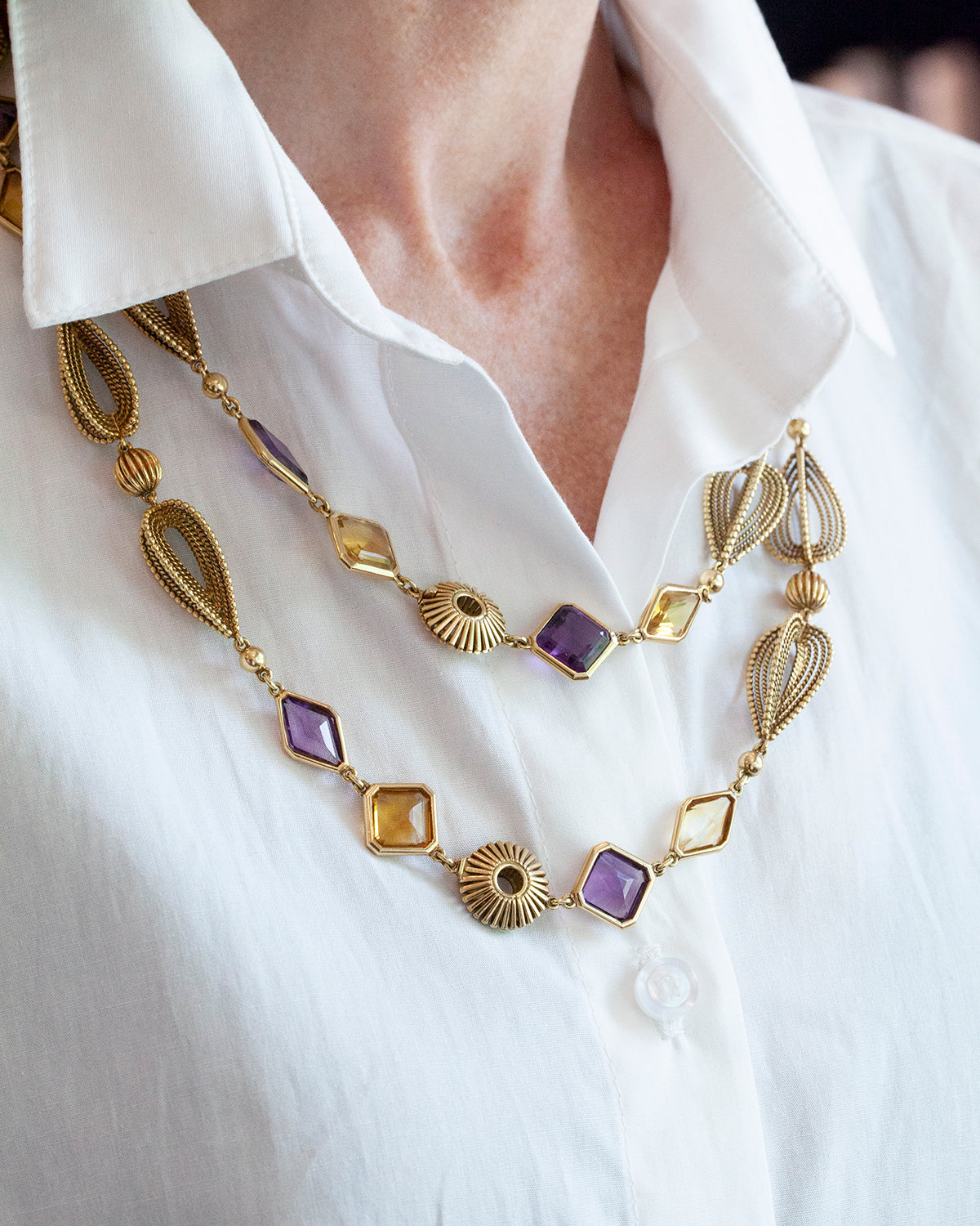 The necklace can be broken down into six individual bracelets or a variety of necklace lengths. Every detail is of the finest quality.