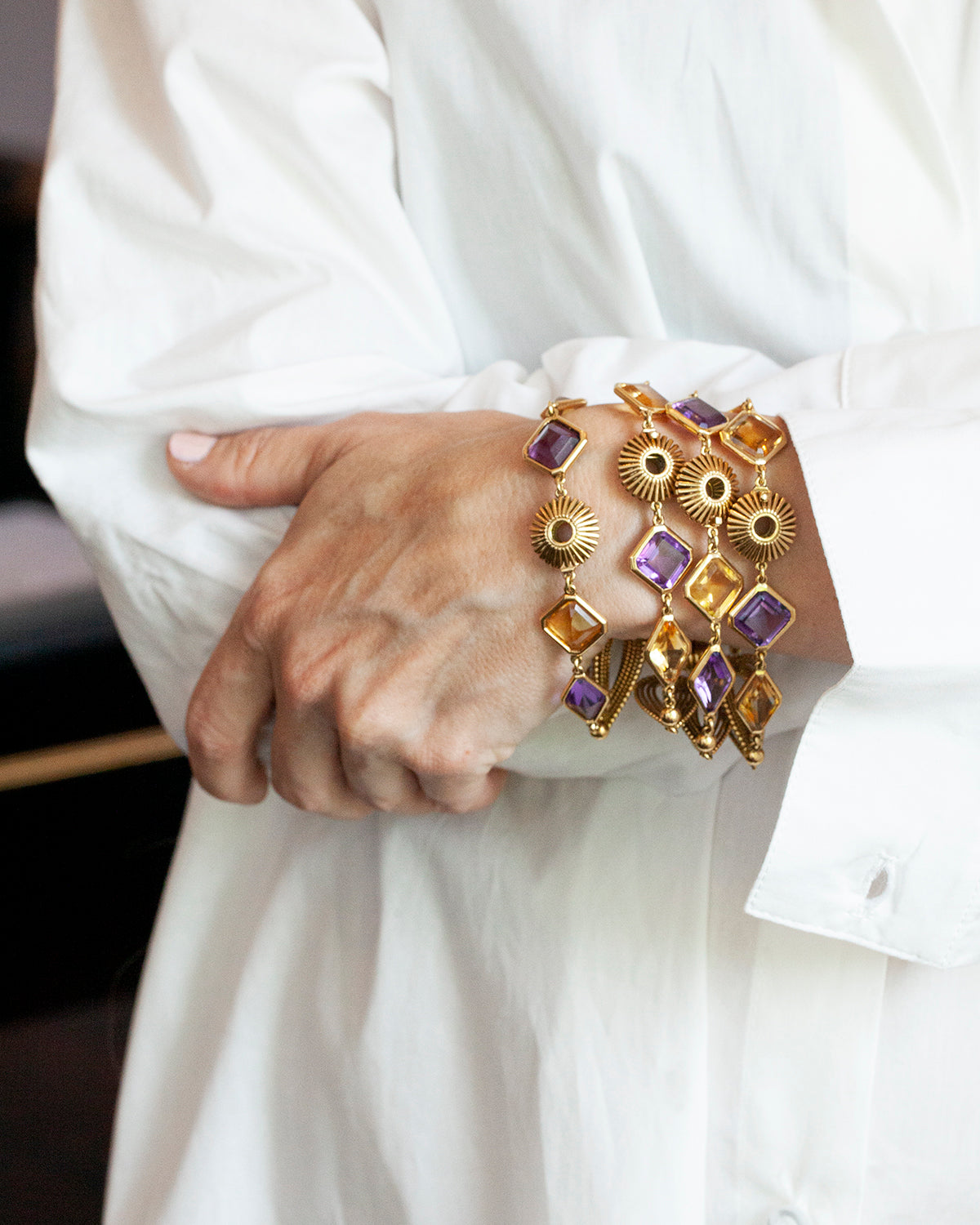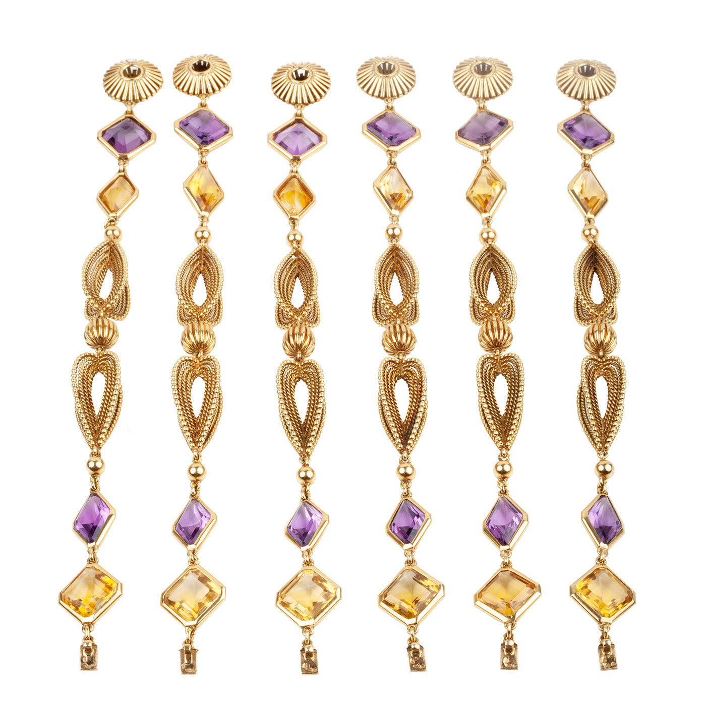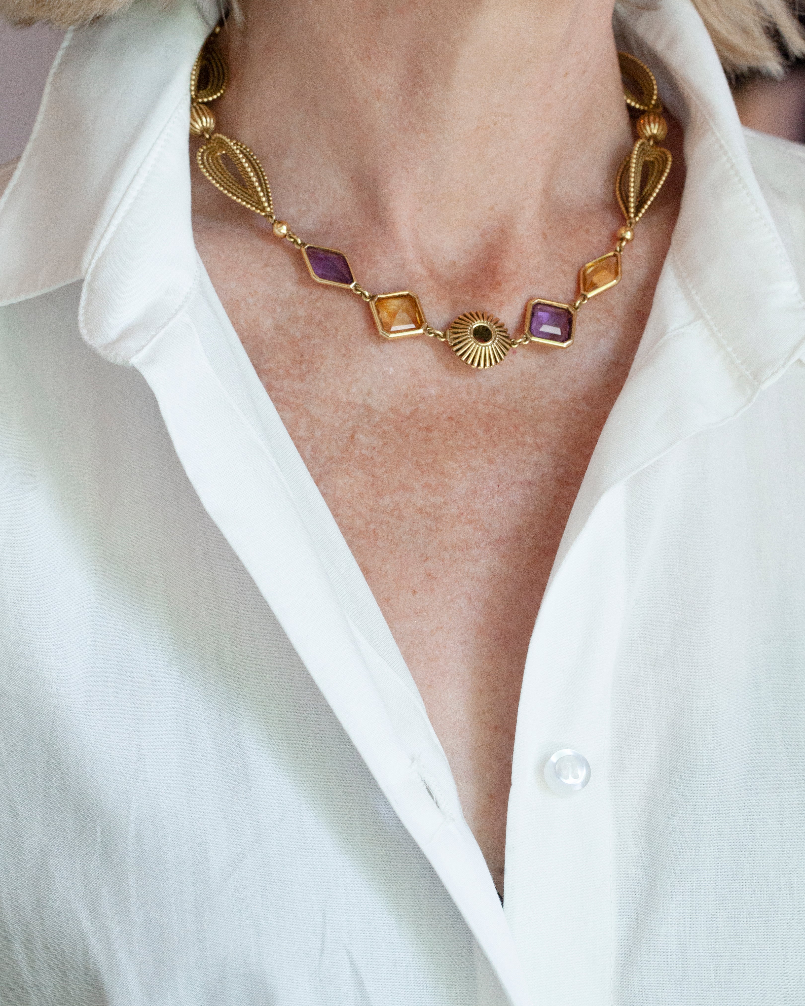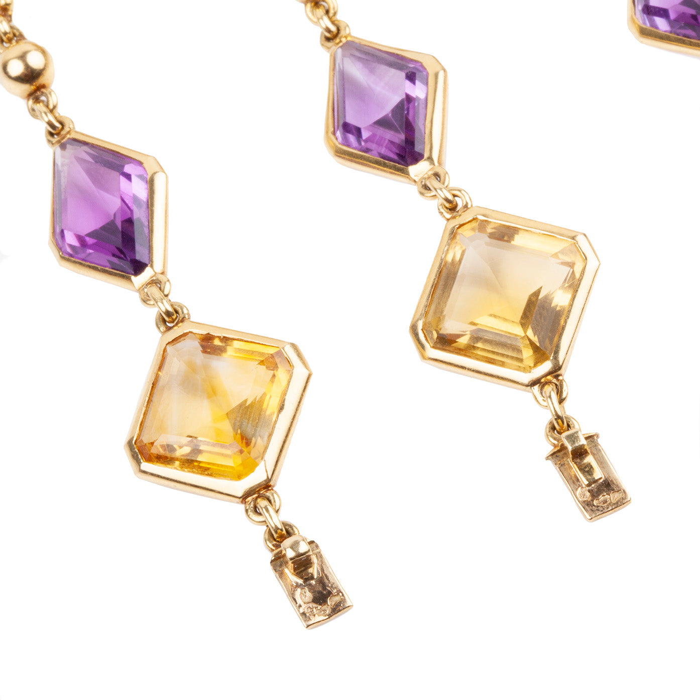 Vintage Elaborate linked Amethyst and Citrine Necklace and Bracelets