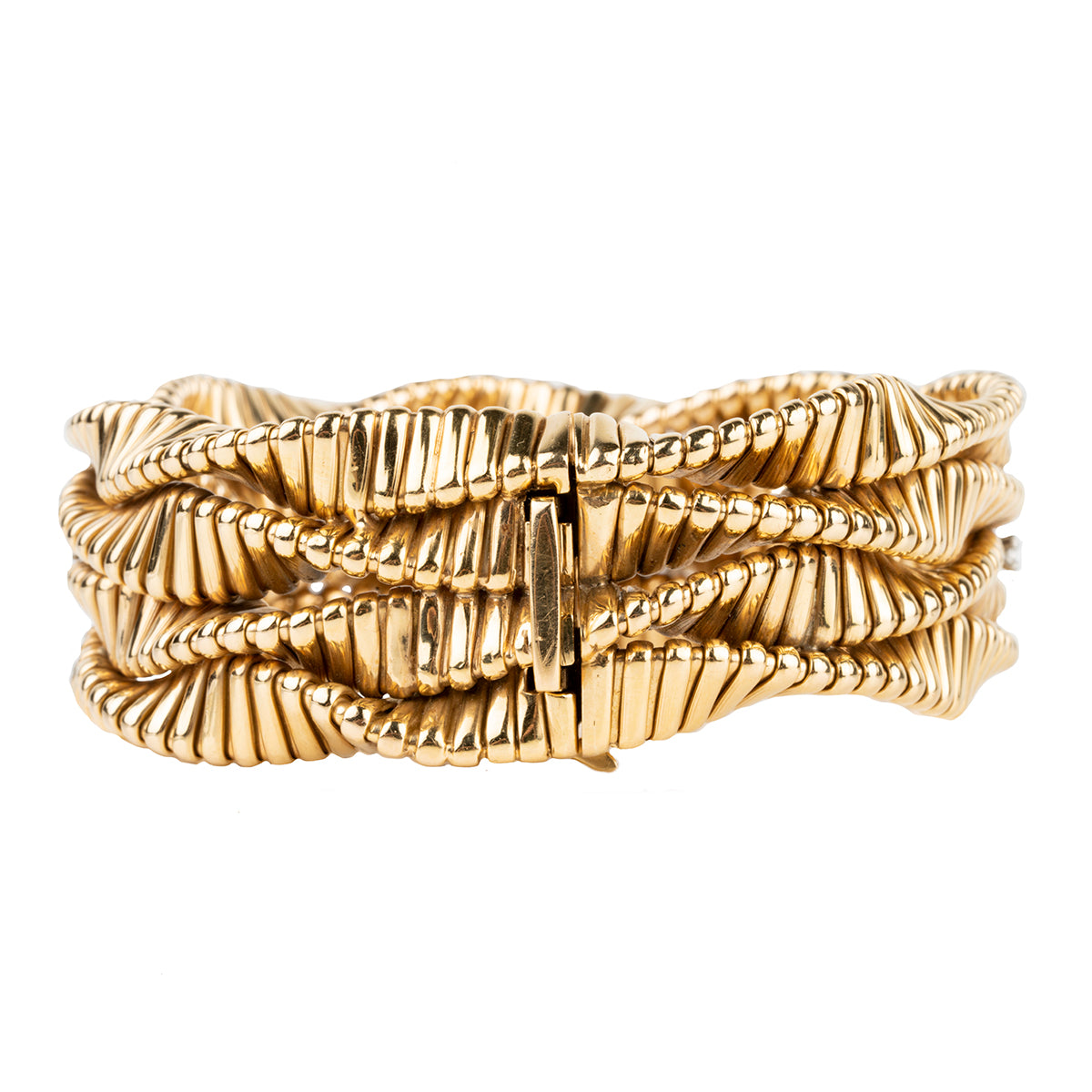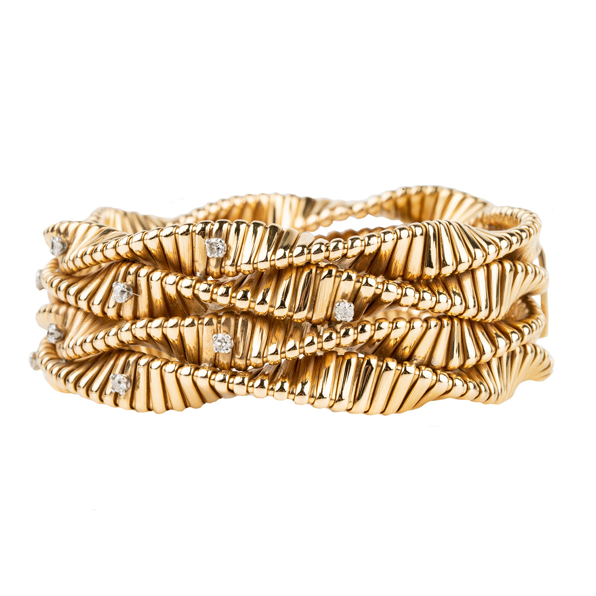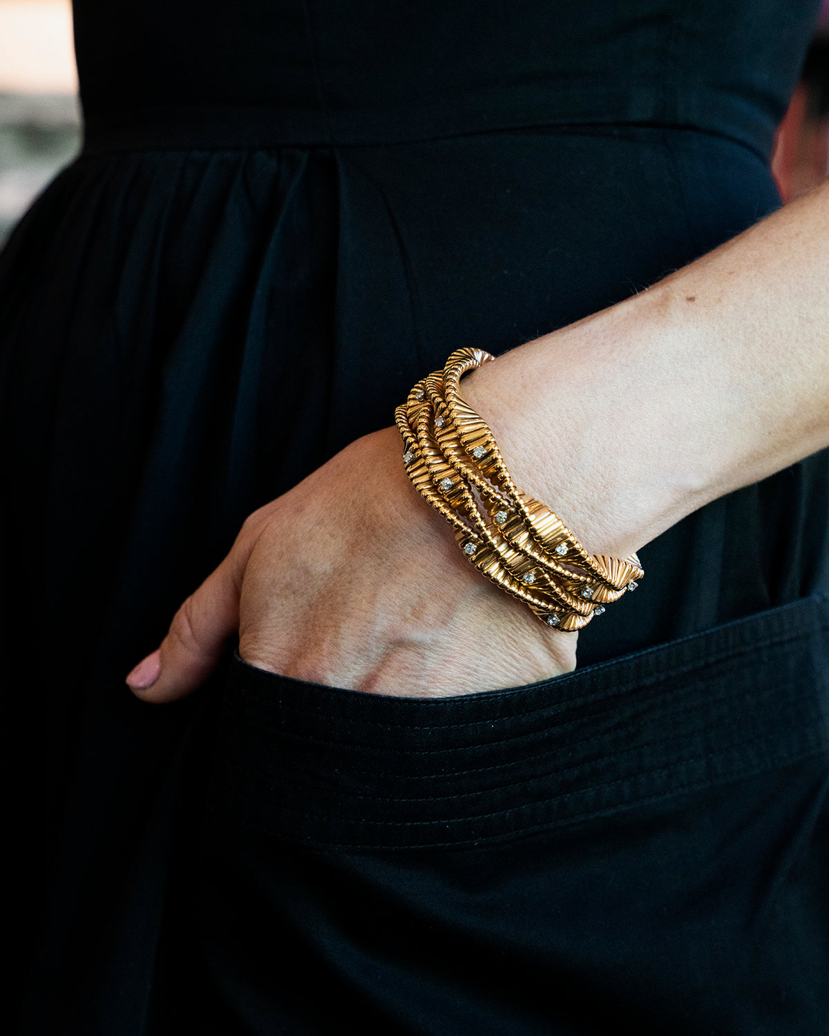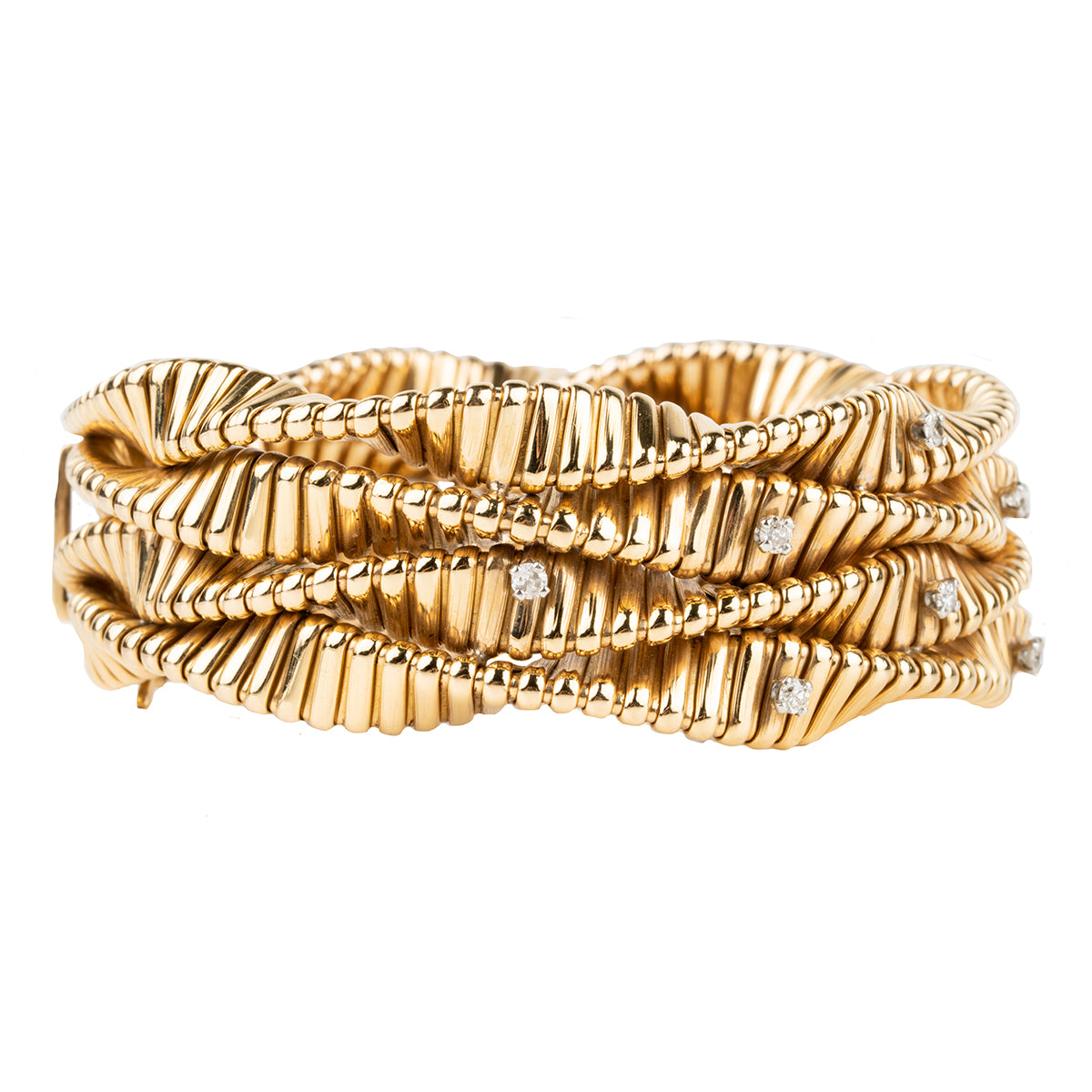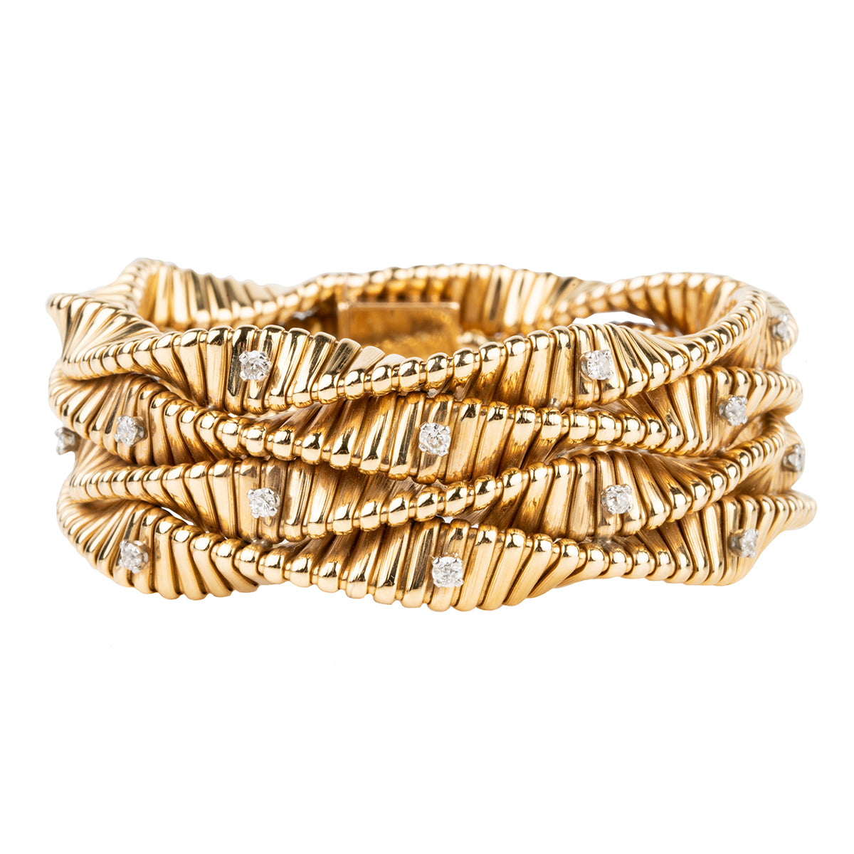 Retro French Bold Bracelet in 18k Gold and Diamonds