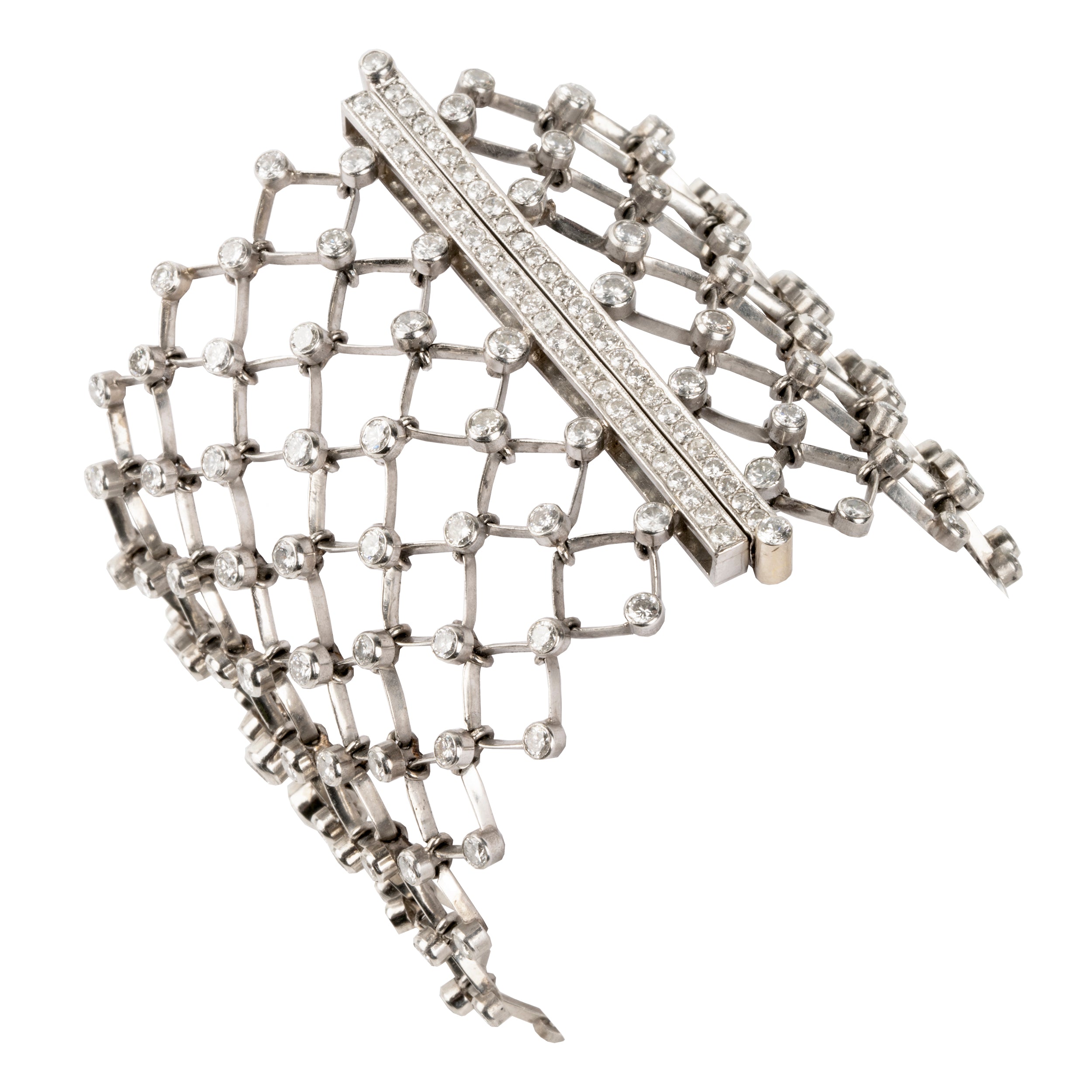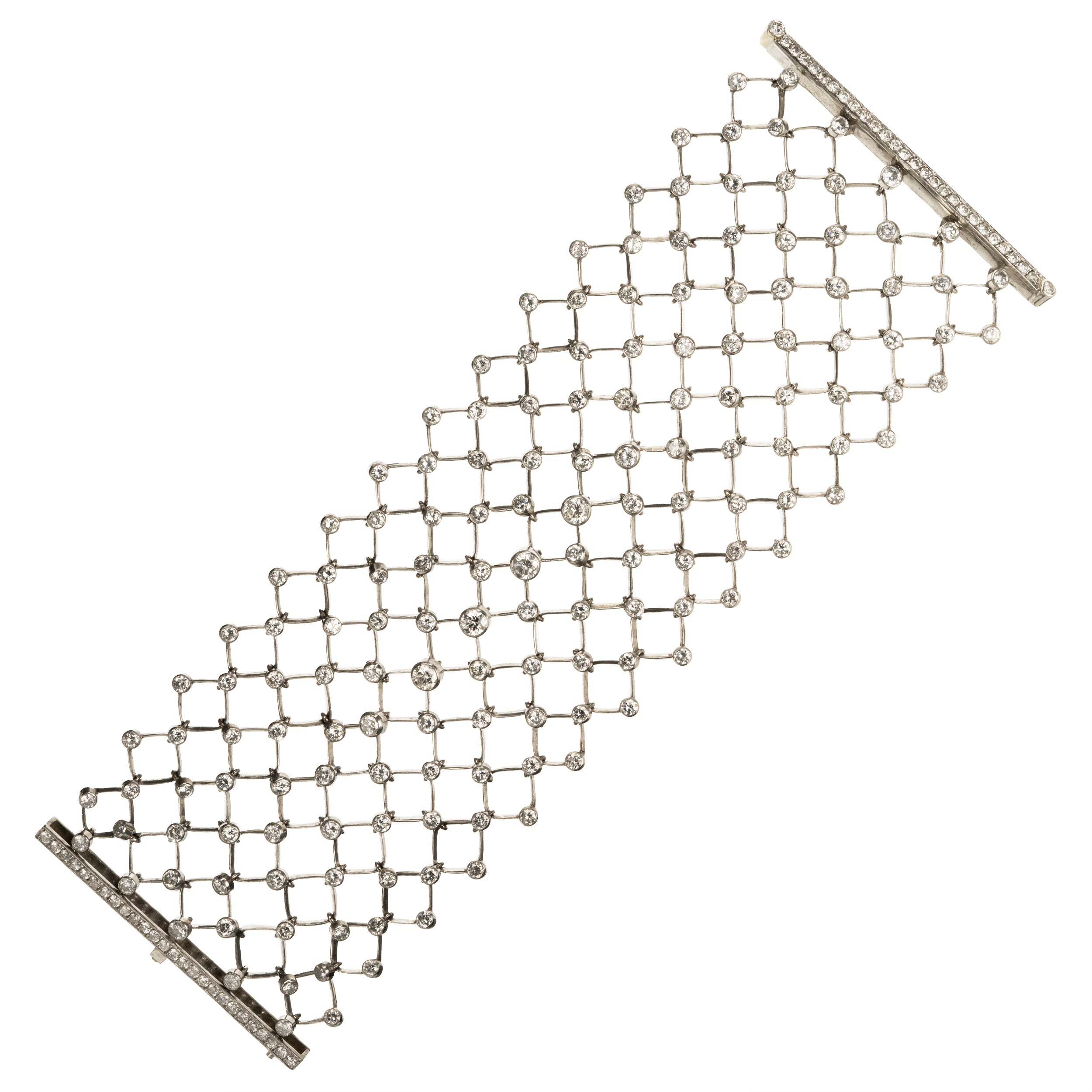 Vintage Trelliswork Platinum and Diamond Bracelet