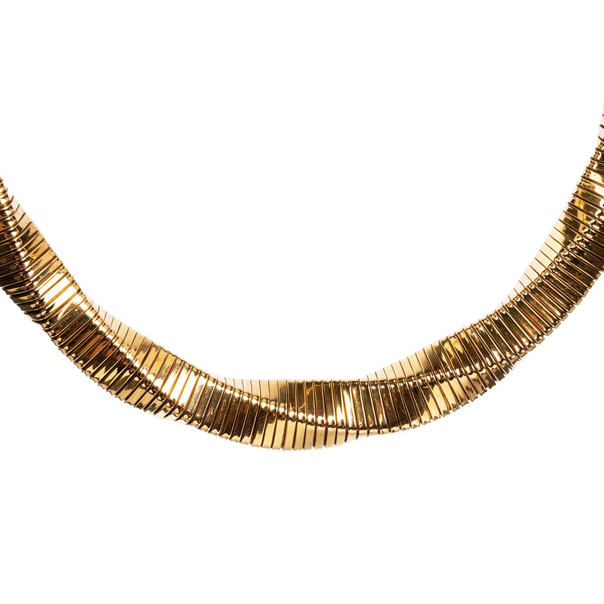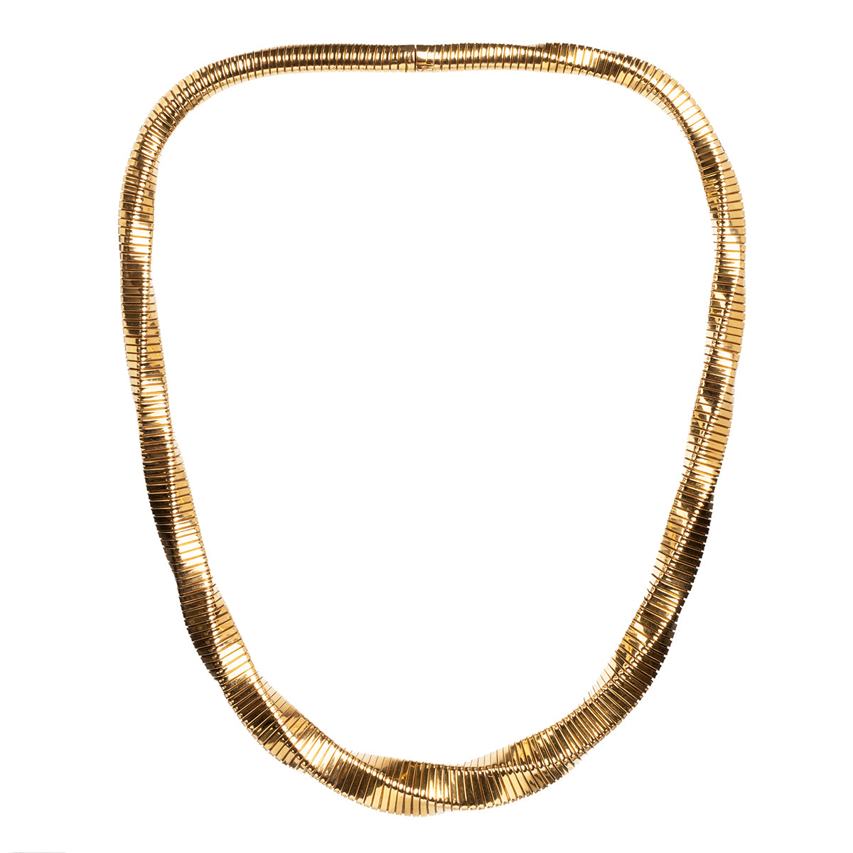 Vintage twisted gas pipe chain necklace. Masterfully made in 18k gold. A very sleek look and feels wonderful on the neck. French in origin. Made in post-war Paris in the late 1940's.