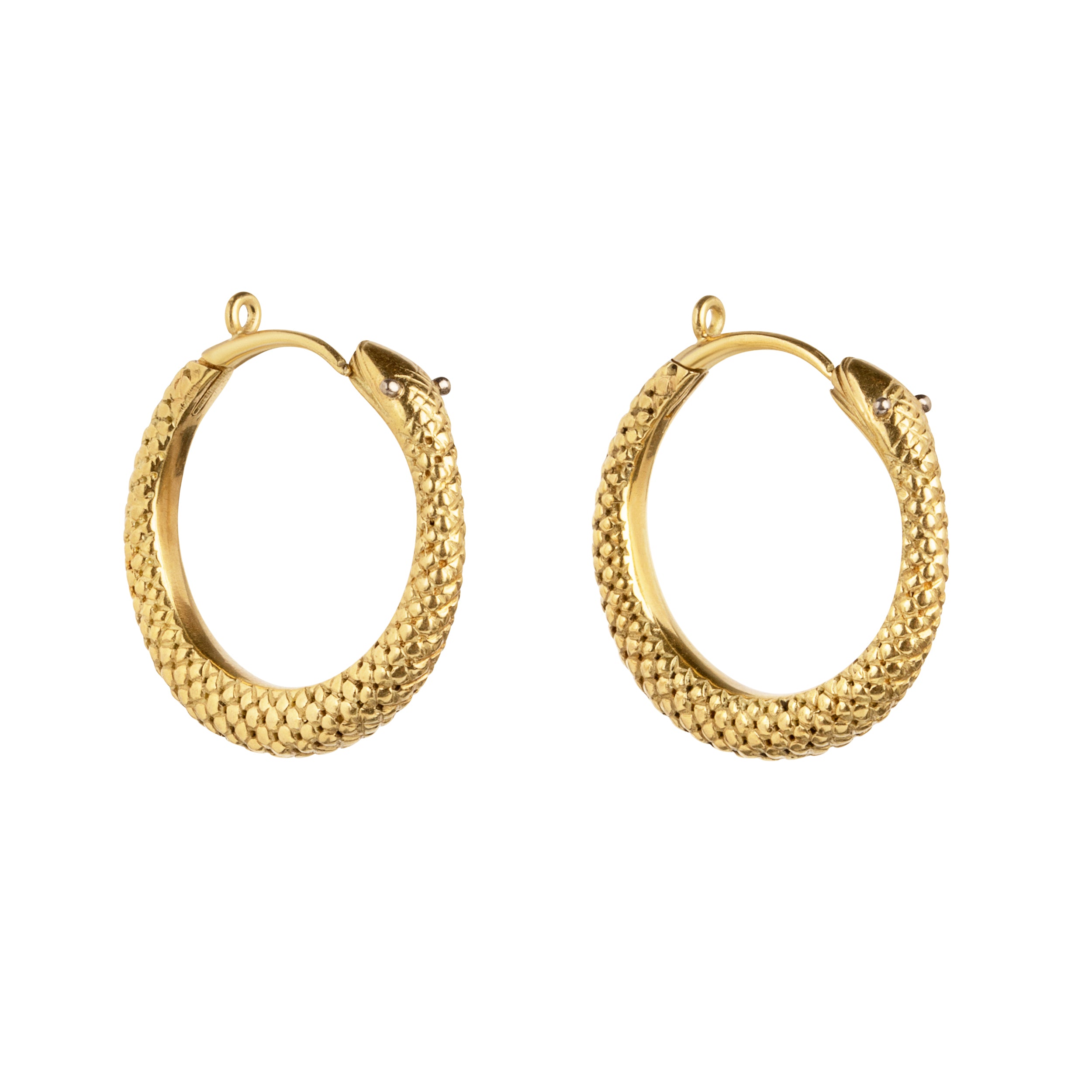 18k gold ouroboros hoop earrings are replicas of Georgian era earrings.