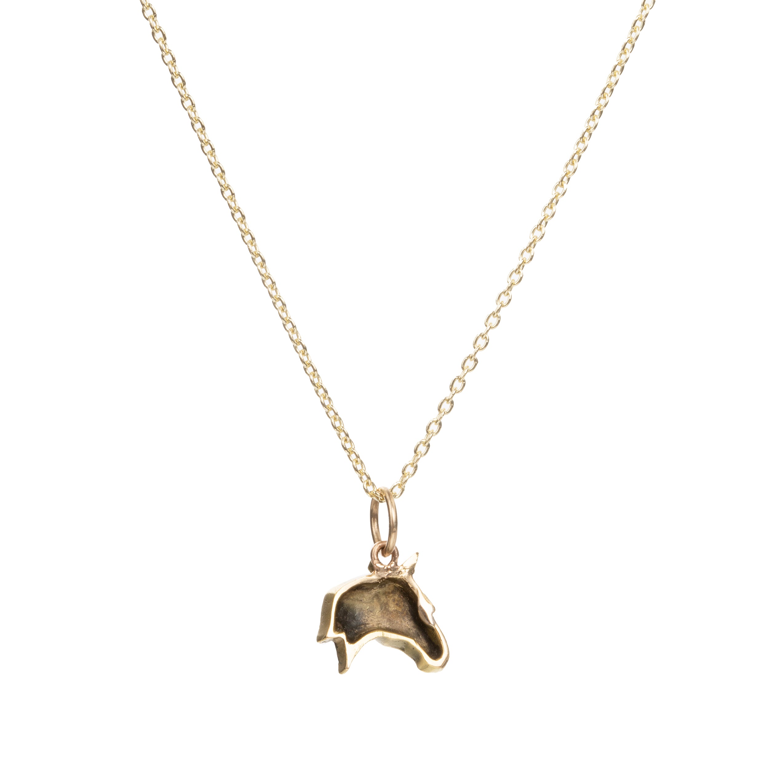 Sweet little vintage gold horse charm with diamond eye. 14k Gold with small single cut diamond.