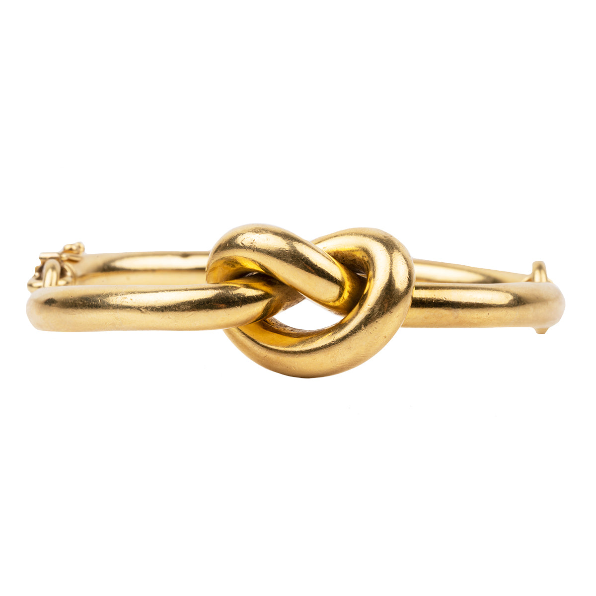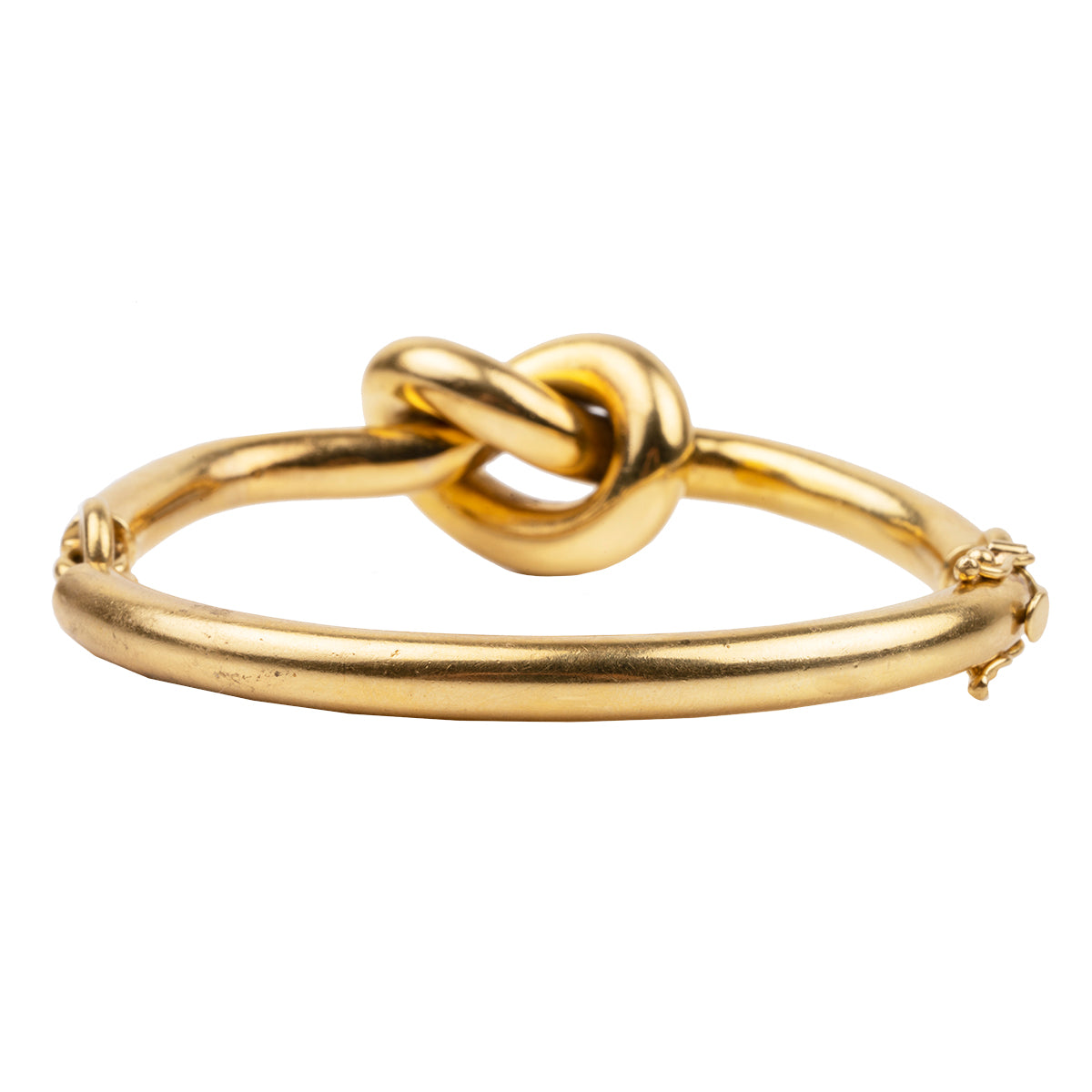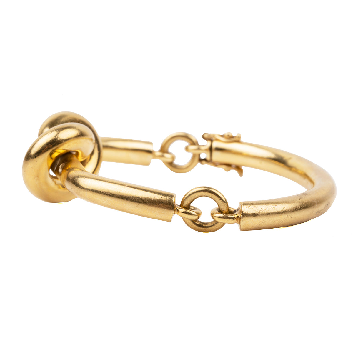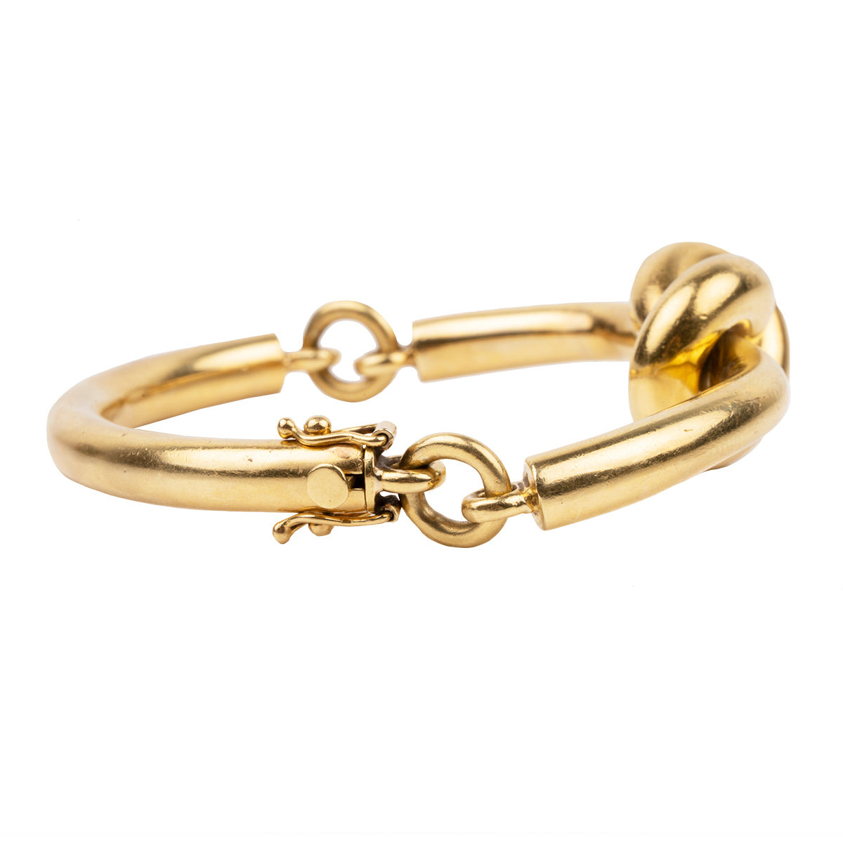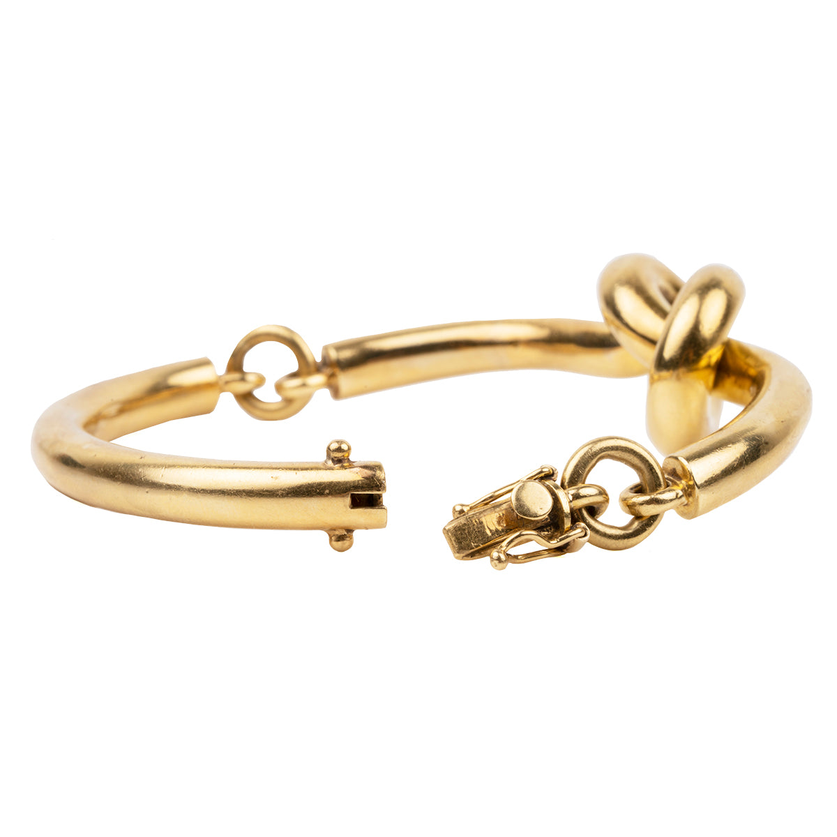 Vintage gold knot bangle, in 18k gold. Handmade designs with hinged sides. Spanish hallmarks.
