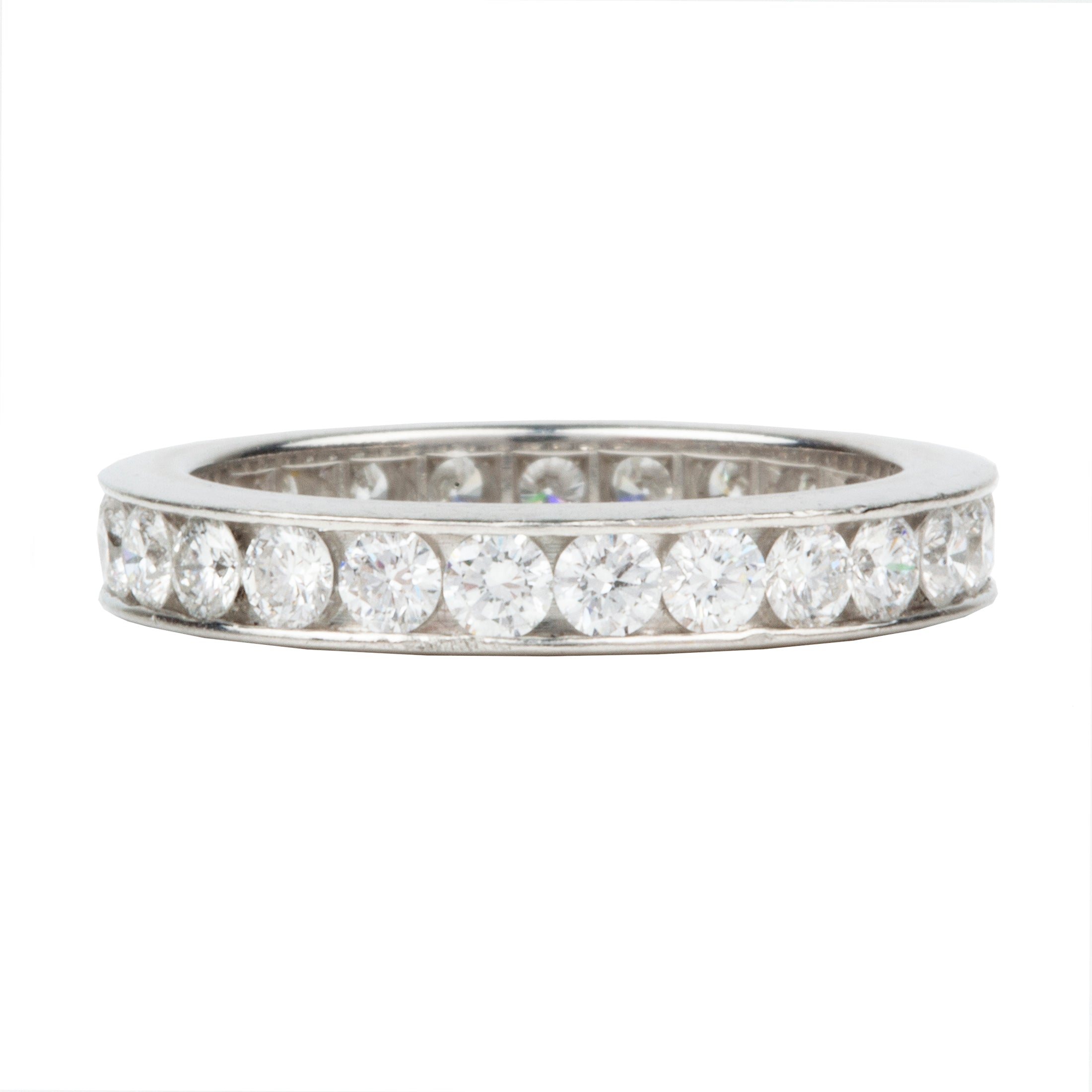 Vintage Harry Winston diamond eternity band. Round brilliant cut diamonds set in a platinum channel setting.