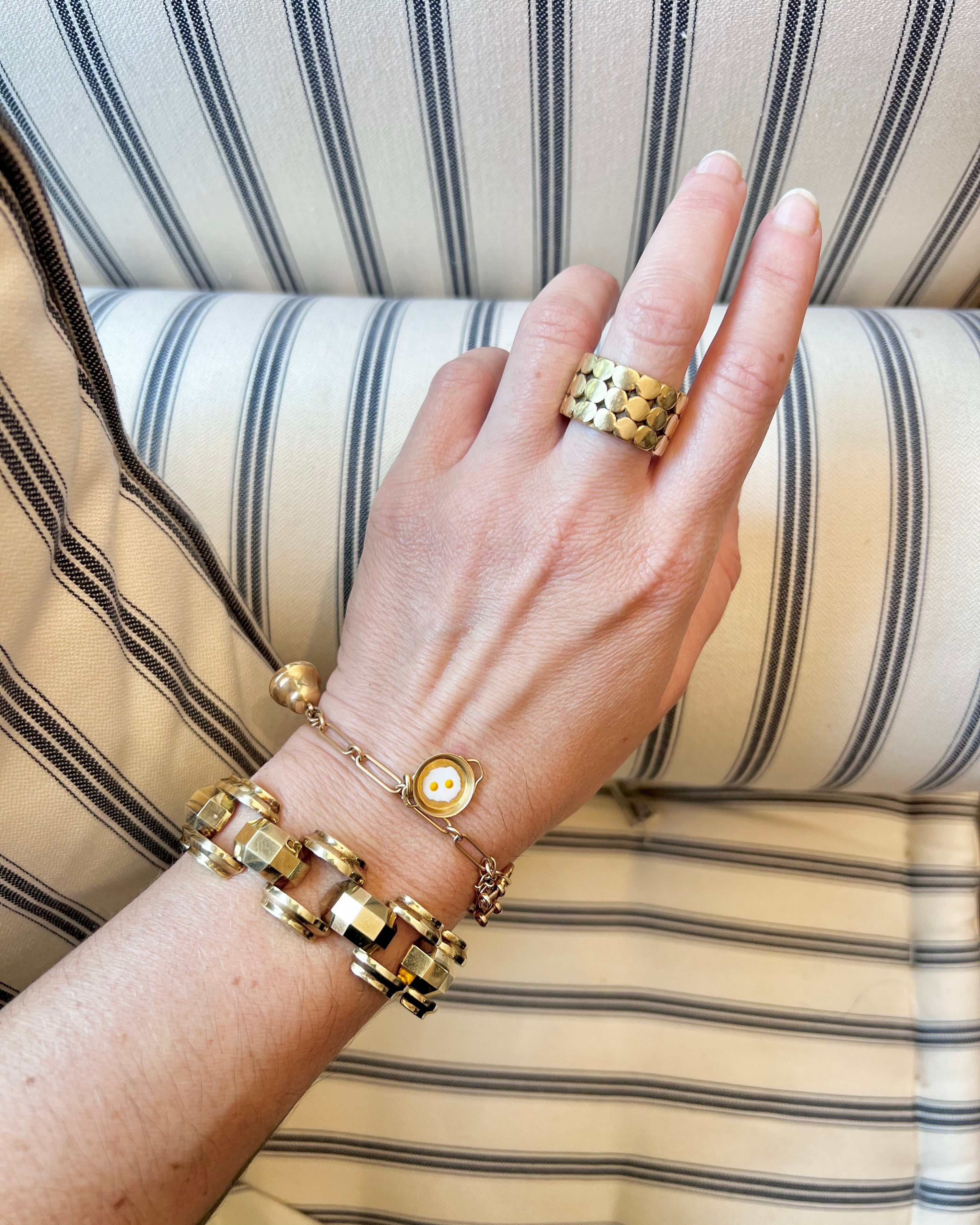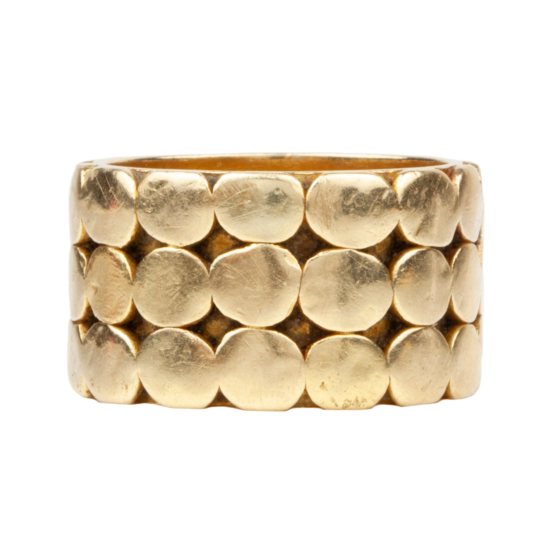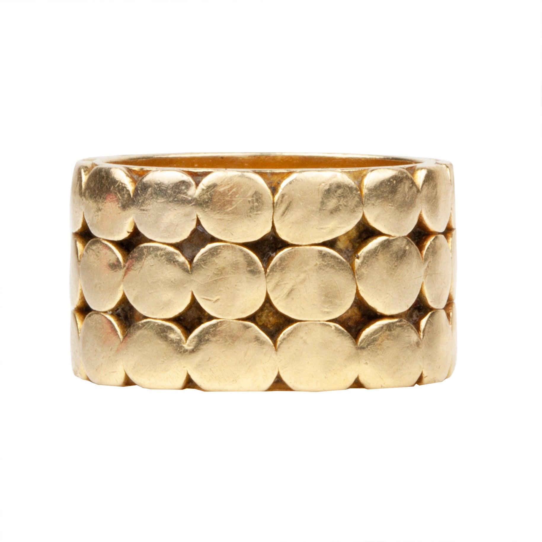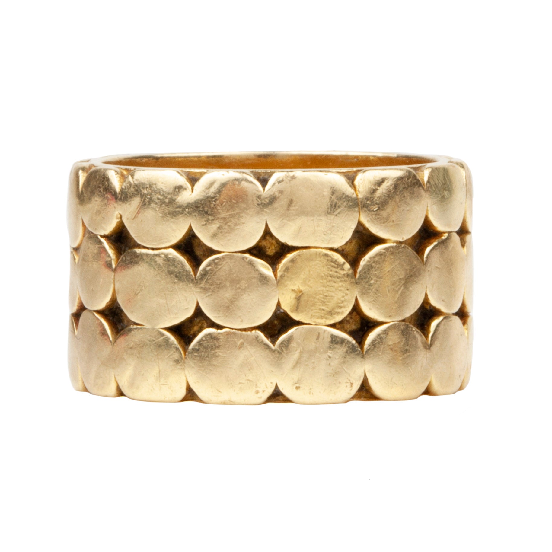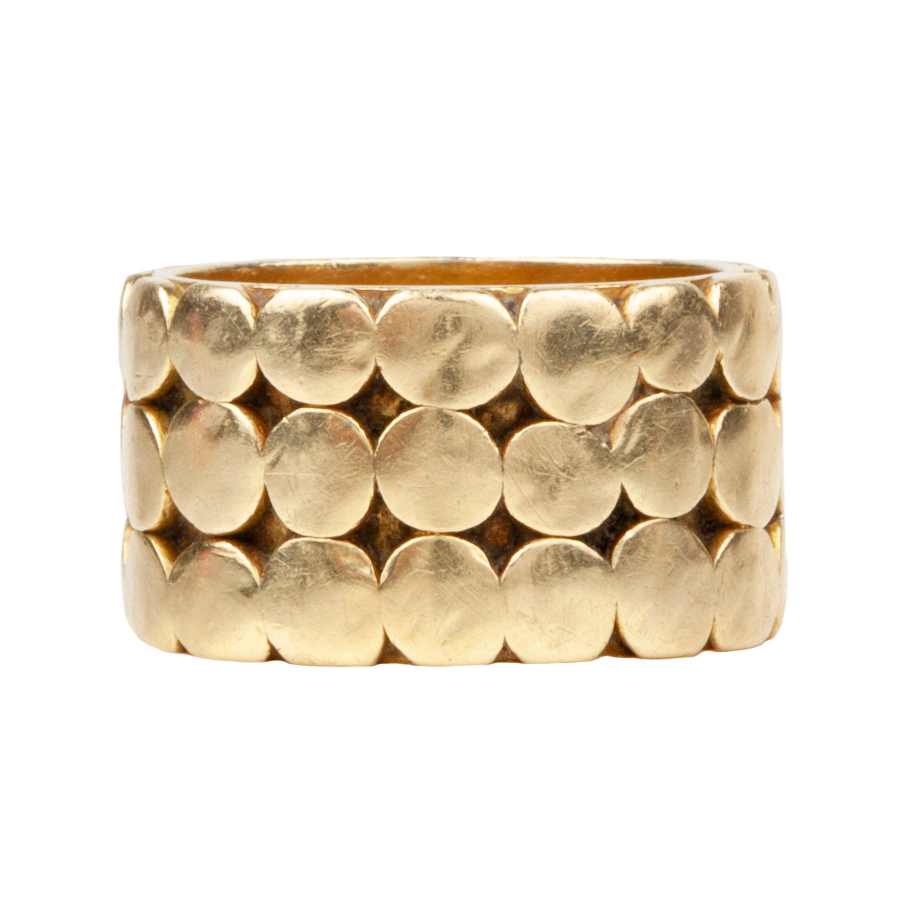 Vintage heavy gold ring with bold dot pattern, in 18k gold. English in origin Hallmarks for 1962, London.