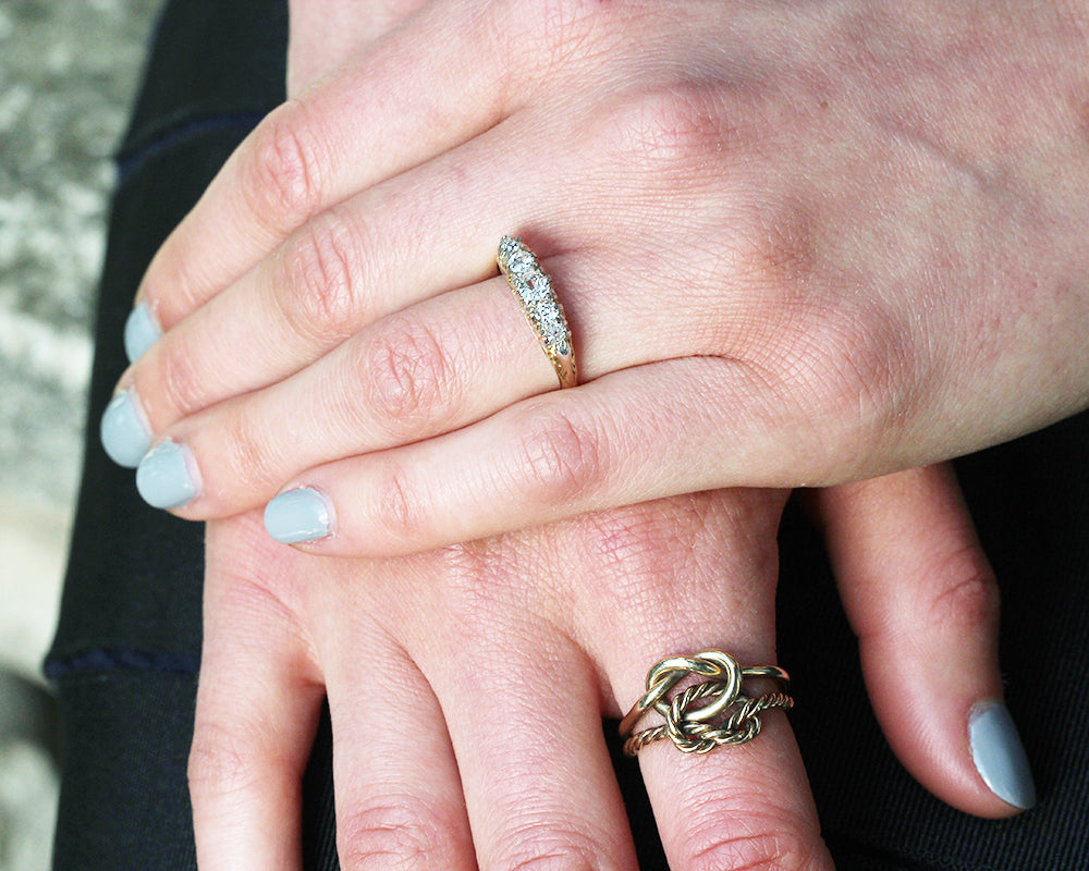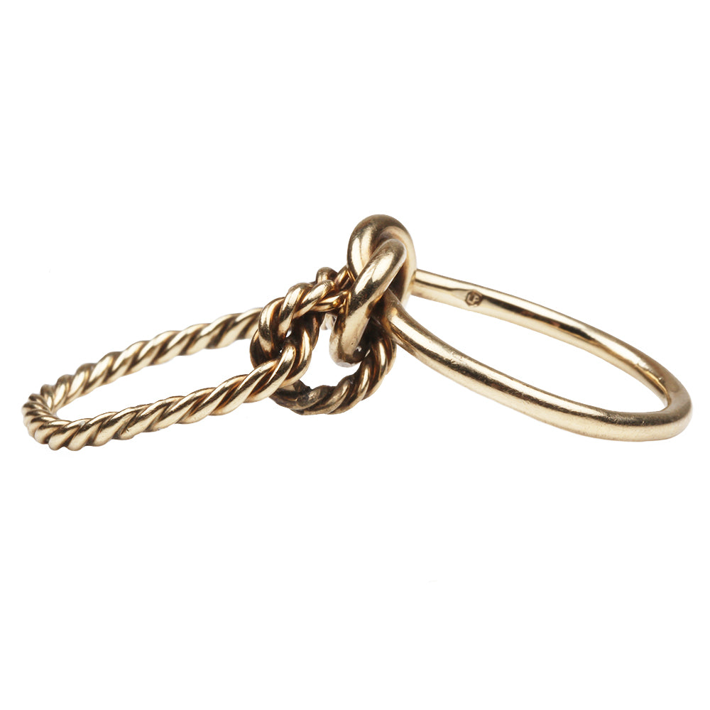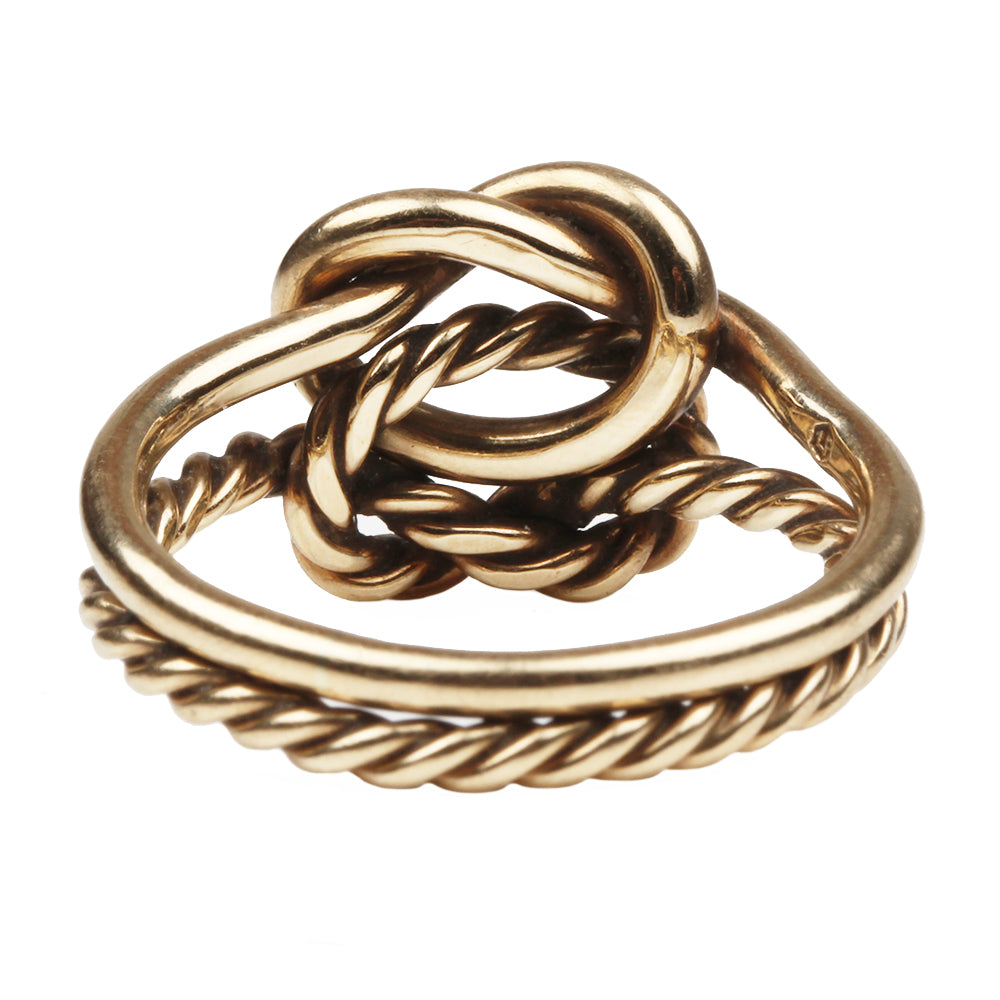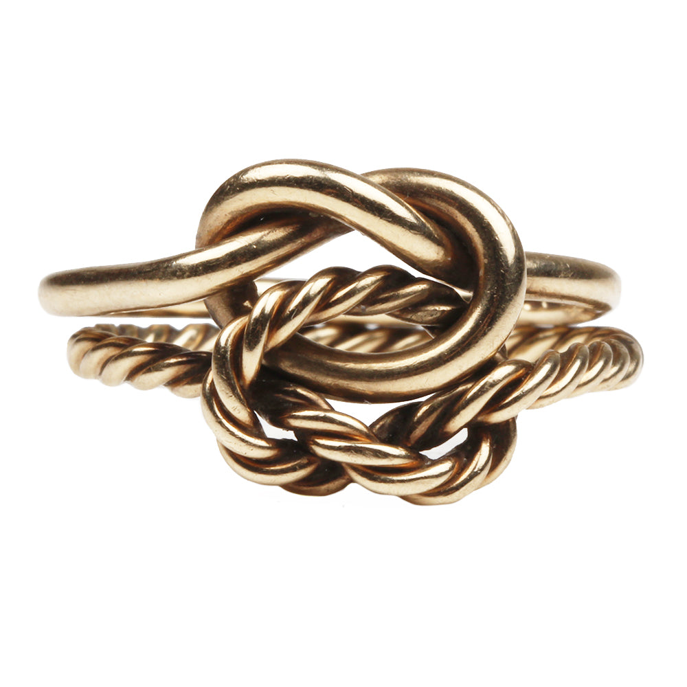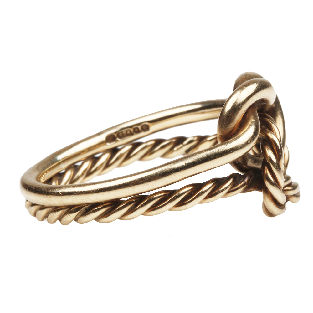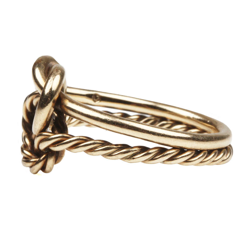 Early 20th Century double lovers knot Ring, in 9k gold. Twisted knot linked into plain knot. Lovely example of lover's knot ring representing a wonderful sentiment. The knot was a popular Victorian era symbol for eternal love.