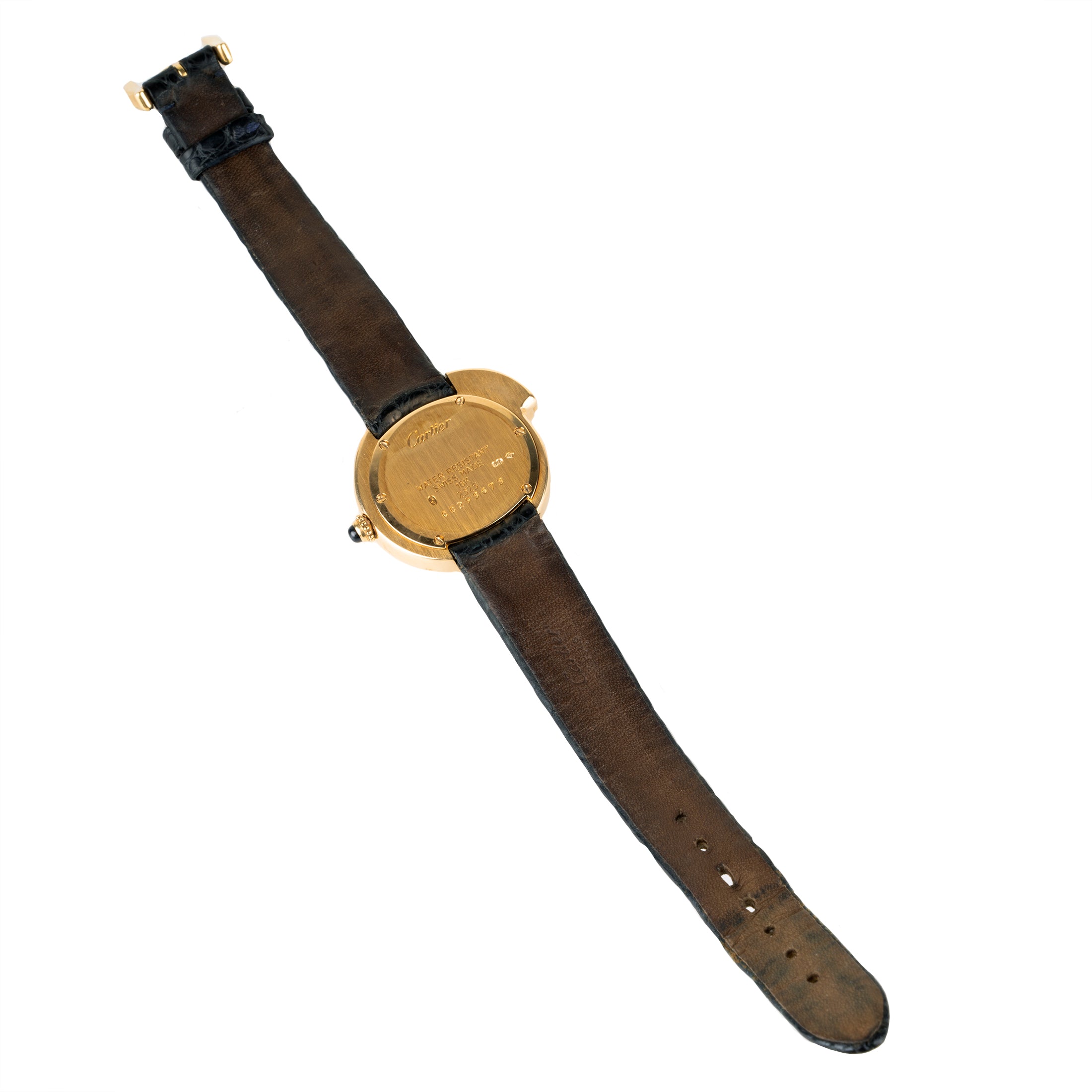 From Cartier’s figurative collection a chic 18k gold ladies watch. Black alligator strap. seriel number #2325 00293673.