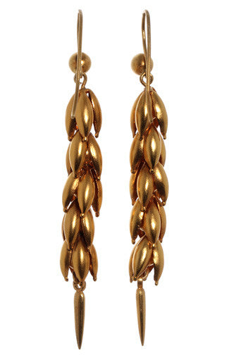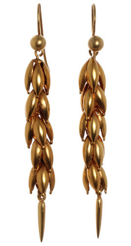 English wheat sheaf gold colored alloy earrings symbolizing abundance.